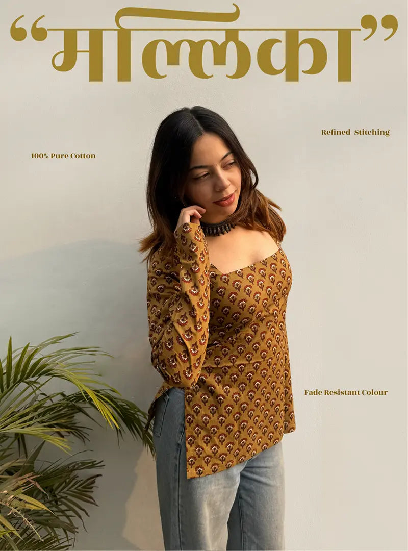 Malika Square Neck Kurti by Evara features a clean silhouette, comfortable fit & 100% pure cotton fabric—perfect for college, office and everyday wear.