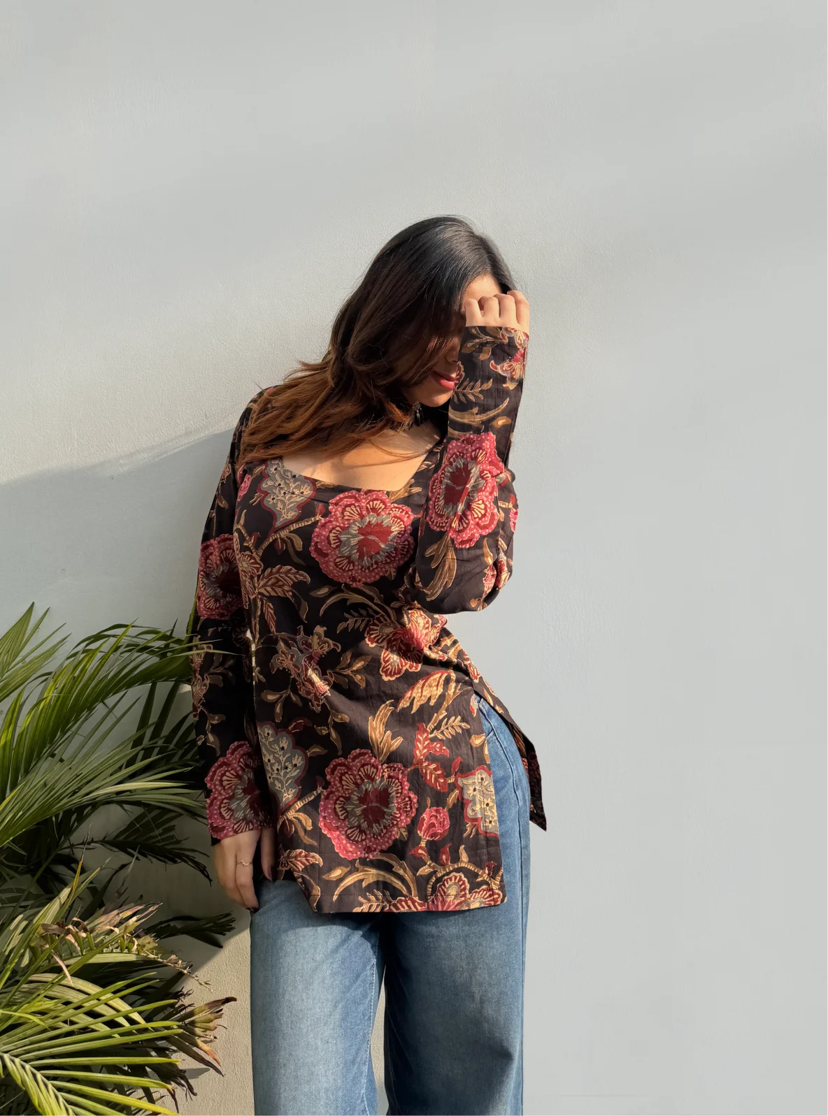 Nimrat Boat Neck Kurti by Evara features a clean silhouette, comfortable fit & 100% pure cotton fabric—perfect for college, office and everyday wear.