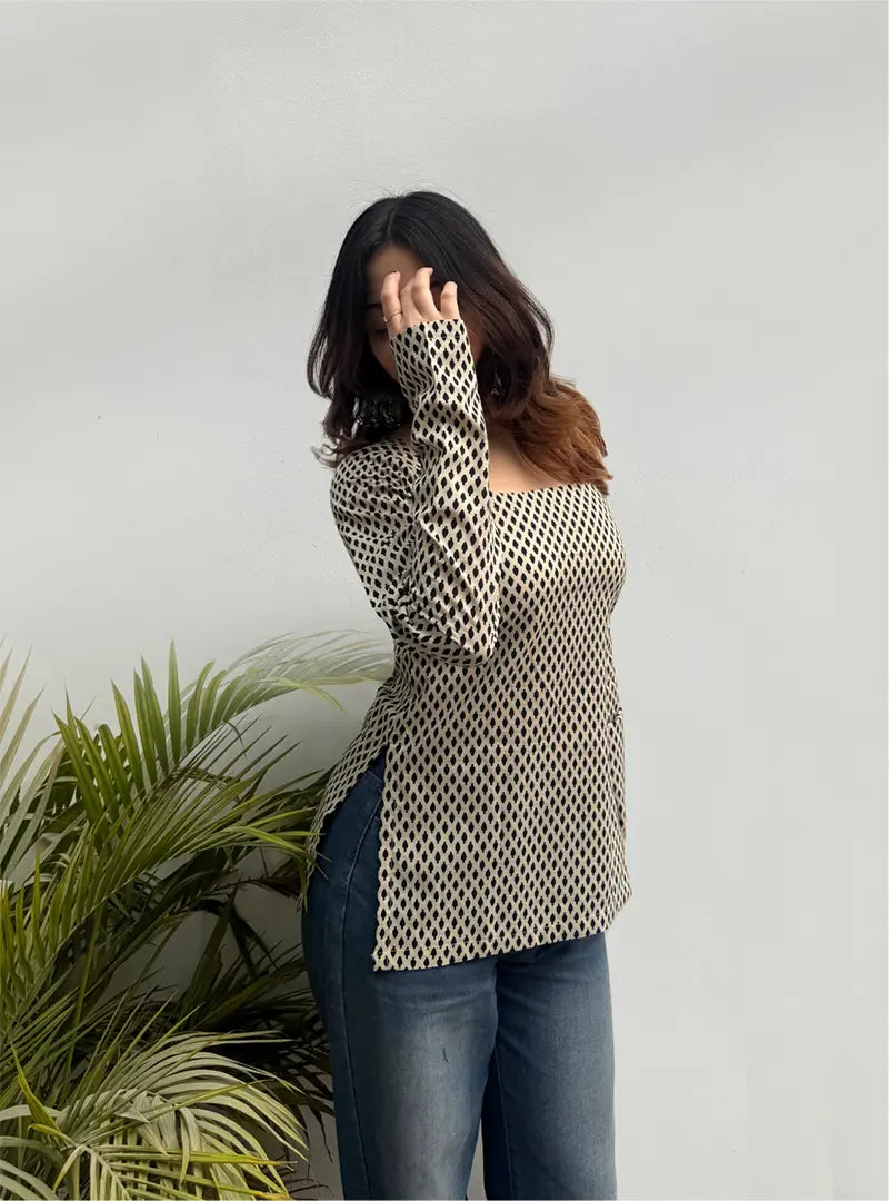 Sargam Boat Neck Kurti by Evara features a clean silhouette, comfortable fit & 100% pure cotton fabric—perfect for college, office and everyday wear.
